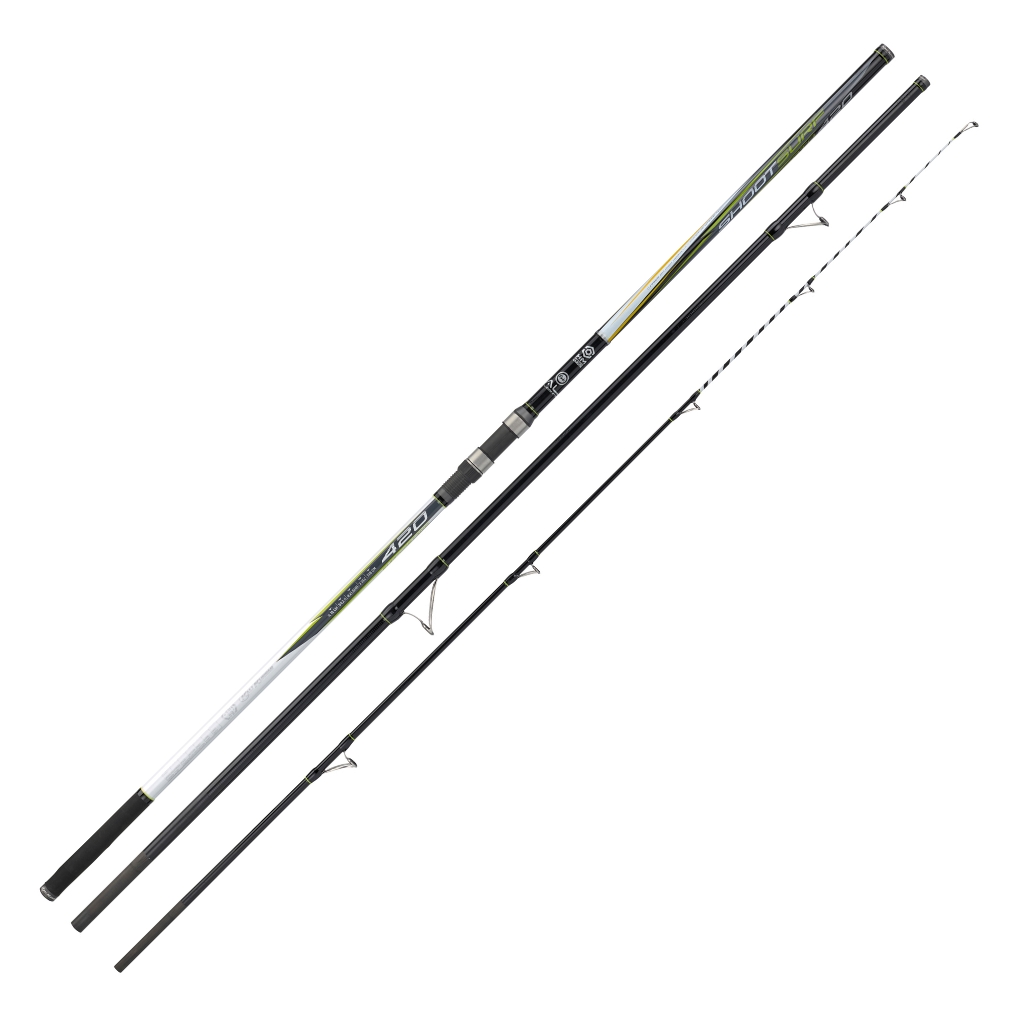 SHOOT SURF to wysokiej jakości wędka surfcastingowa wykonana z wytrzymałego włókna węglowego HM Carbon. Wyposażona została w hybrydową szczytówkę, która zwiększa czułość, co ułatwia zauważenie delikatnych brań. Ergonomiczny uchwyt typu Surf Grip zapewnia komfort użytkowania podczas długich sesji wędkarskich. Uchwyt kołowrotka został wykonany z połączenia metalu i włókna, co przekłada się na trwałość i stabilność. Wędka posiada przelotki Fuji Low Rider z wkładką Alconite – gwarantujące dalekie i płynne rzuty. W zestawie znajduje się również materiałowy pokrowiec.
