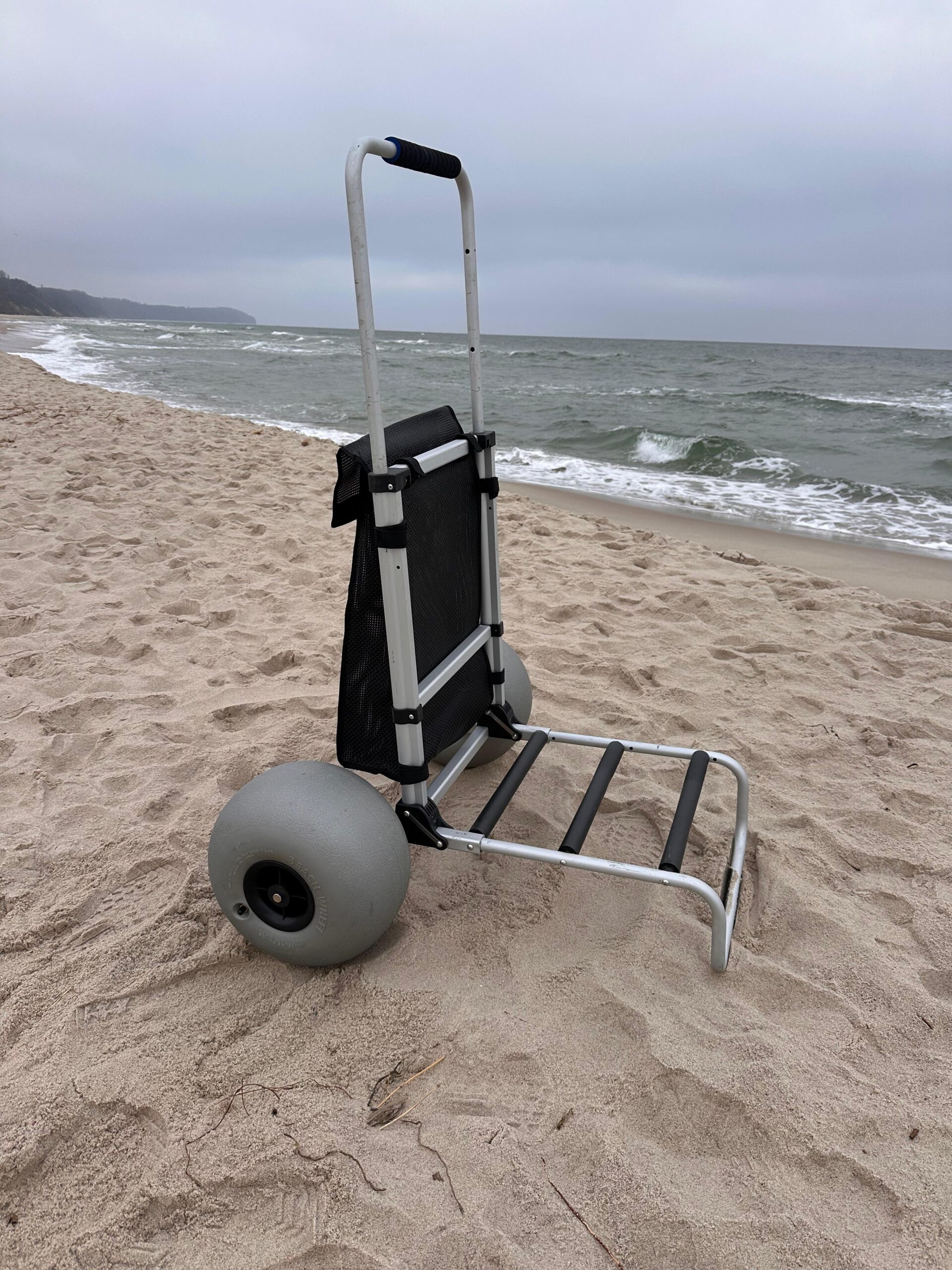 Wózek plażowy stworzony z myślą o wędkarzach oraz plażowiczach, którzy potrzebują wygodnego rozwiązania do przewozu swojego ekwipunku. Wyposażony w wytrzymałą konstrukcję, duże koła dostosowane do piasku oraz przestronną platformę, która pomieści wiadra, torby, wędki i inne akcesoria. Składany uchwyt i kompaktowa forma po złożeniu umożliwiają łatwy transport i przechowywanie. Idealny na dłuższe wyprawy nad wodę.